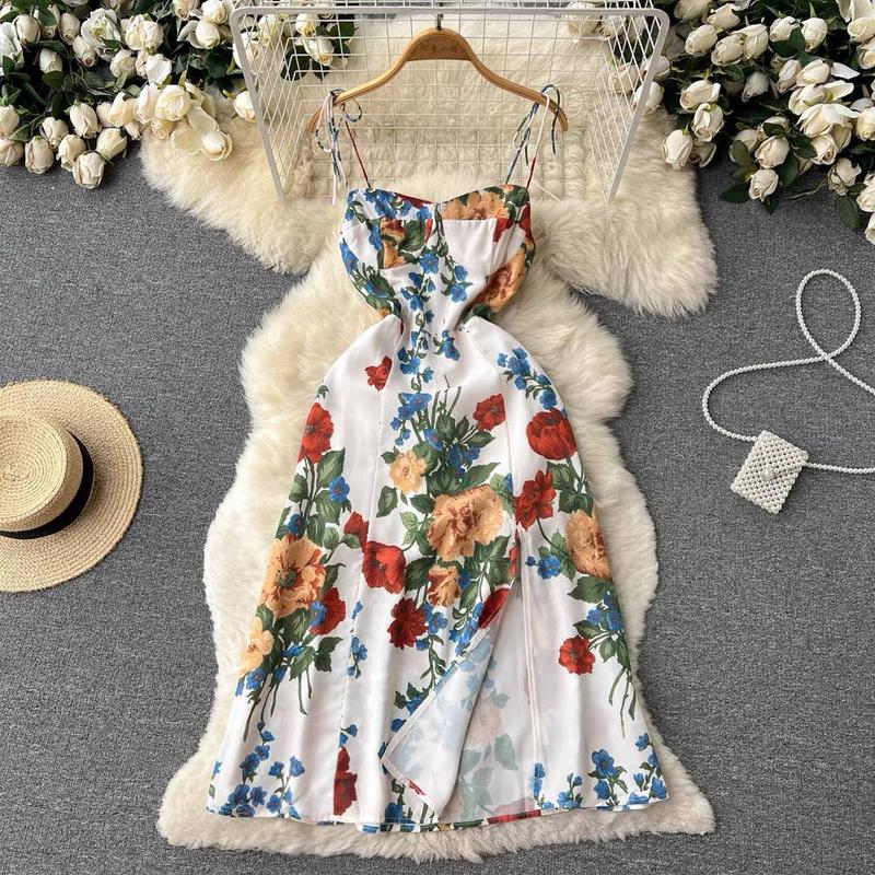 Елегантна сукня, на тонких брителях, з виразним розрізом, в дуже красивому квітковому забарвленні❤️ Мод: 2181 Колір: білий Розмір: s,m Ціна 600 грн