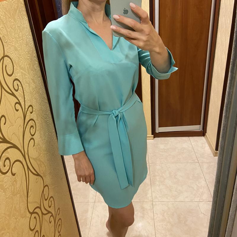 Сукня рубашечного крою. Легка, та приваблива. Можна носити з паском та без. Довжина рукава: 50 см; Довжина виробу: 88 см; Ширина під руками 47см; Ширина стегон 90-92 см.