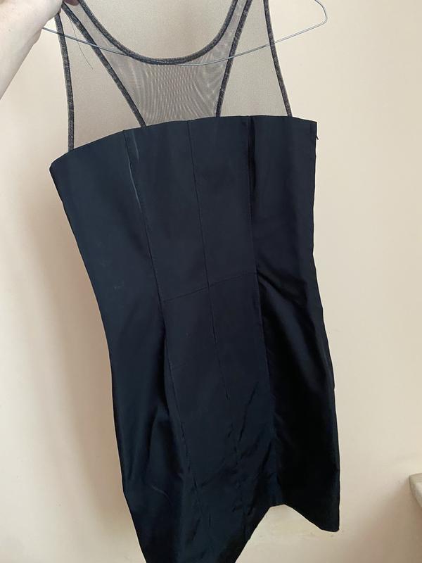 Черное платье по фигуре, материал плотный, сверху сеточка, сбоку замочек