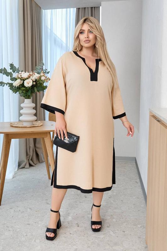 Платье Тканина: льон //75 Цвета: беж и черный Размеры: 46-48,50-52,54-56,58-60 Цена: 799 грн