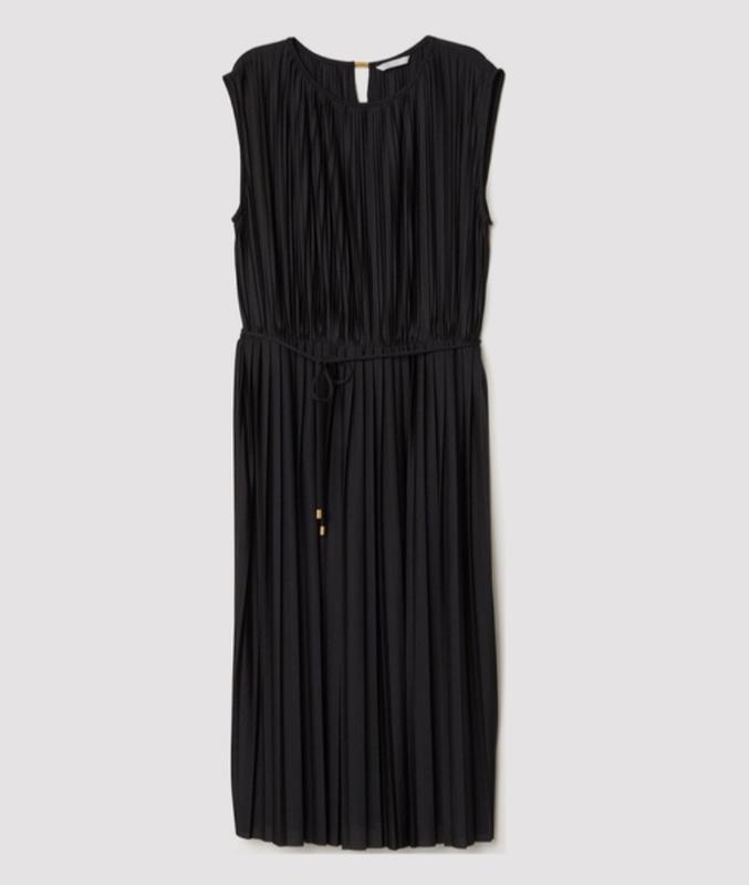 Платье миди H&M. Материал плиссированный. Есть пояс. Цвет -черный. Размер M (наш 46-48). Стан идеален, без дефектов. Нюанс: на поясе потеряна металлическая частицы на конце. ПО талии 38 (внутри вшитая резинка, тянется), длина 112. Верх свободный.