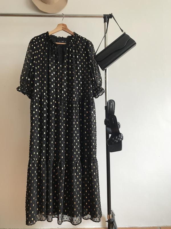 🔥 Сукня чорна міді F&F Фатинова на підкладці Розмір 14/42 Стан чудовий Плечі 39 рукав 38 груди 55 талія 57 бедра 65 довжина 117 Шифон на підкладці