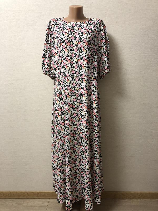Плечі-38,груди-58,талія-49,бедра-73,внизу-105,довжина-133,рукав-34. Склад-100% віскоза.