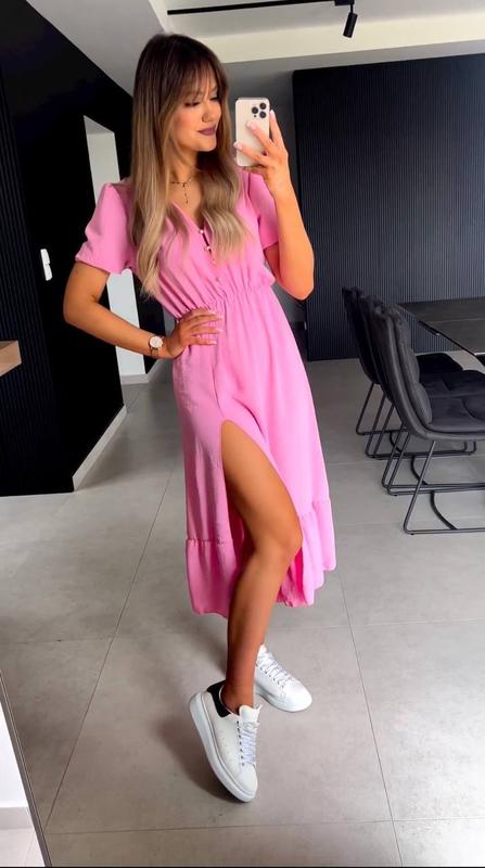 Плаття, Сукня Модель 1004 Тканина основи, штапель віскозний відмінної якості, дуже легка та приємна тканина. Розміри: 42-44, 46-48, 50-52, 54-56 Виміри: 42-44 обхват грудей-86/90, обхват талії-60/70, довжина від пояса 79, довжина по спинці 112 Виміри: 46-48 обхват грудей-92/96, обхват талії-68/78, довжина від пояса 79, довжина по спинці 112 Виміри: 50-52 обхват грудей 104/108, обхват талії-78/88, довжина від пояса 79, довжина по спинці 112 Виміри: 54-56 обхват грудей-110/114, обхват талії-90/100, довжина від пояса 79, довжина по спинці 112 Кольори: пудра