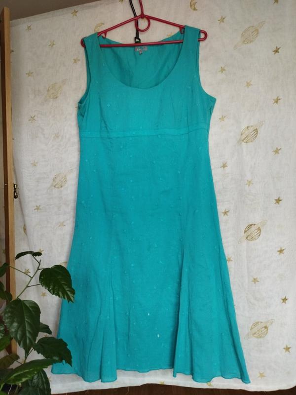 Плаття в дуже гарному стані.За виключенням двох білих цяток на низу.Фото.Склад бавовна, підкладка натуральна,збоку блискавка.Розмір 50. ОГ 104,талія 96, довжина 114.