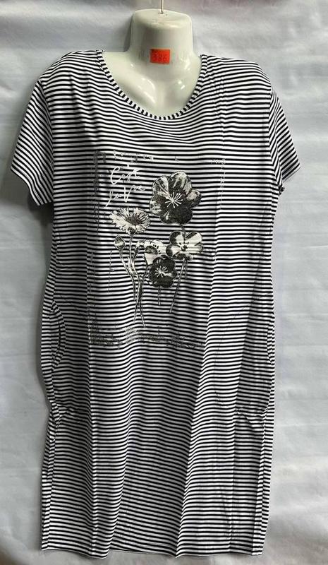 Туніка сукня жіноча напівбатал приємна тканина .Маломіряти! Перевіряйте заміри! Розмір 4ХЛ - ПОГ 52 см, довжина 100 см Розмір 6ХЛ - ПОГ 57 см, довжина 105 см