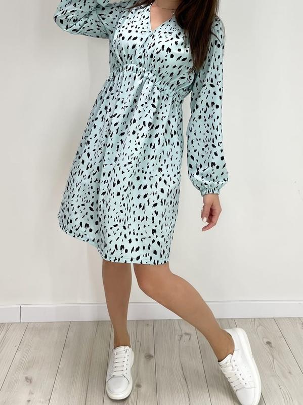 Тканина: софт Колір: чорний, бежевий, м'ятний Розмір: 42-44, 46-48, 50-52 Сукня напівприталеного крою, на резинці. Рукава на резинці.