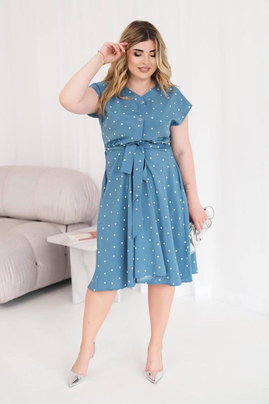 Сукня 1735 Тканина: софт принт горох Розмір: 48-50; 52-54; 56-58; 60-62. Кольори: червоний, капучино, джинс, чорний Ціна 1200грн