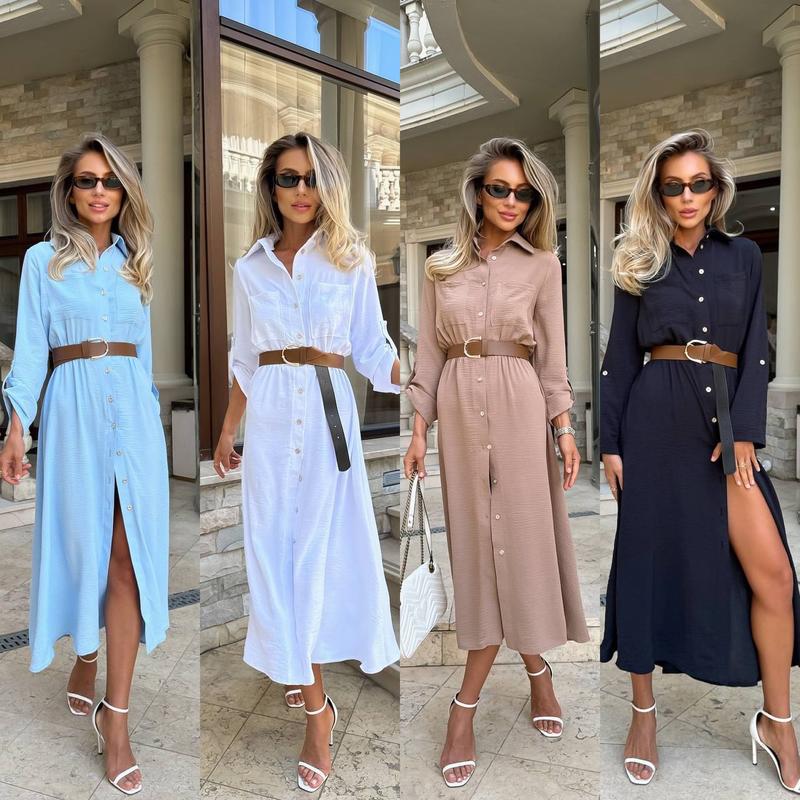 Женское платье Размерный ряд S (42-44); L(46-48);XX(50-52); XXX(54-56) Ткань американский креп жатка, очень приятная на ощупь, не просвечивается) Цвета черный,беж, голубой и белый Платье с длинным рукавом, которое можно аккуратно регулировать, застегивается на пуговицы Талия на резинке, за счет чего идеально садится по фигуре Накладные карманы У комплекті пояс Очень стильная модель, можно носить под разную обувь и надевать на любой случай Цена 680 грн
