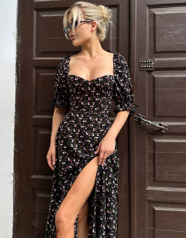 Невероятное летнее платье с открытой спинкой 🤍 Ткань: Софт принт цветы Размеры: 42-44, 46-48 Прекрасное качество! Цвета: Белый принт цветы, Черный принт цветы 2001N