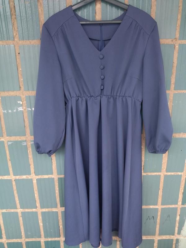 платье с красотой декольте,талия на резинке, руквчики также, спереди красивые пуговицы, длина миди)