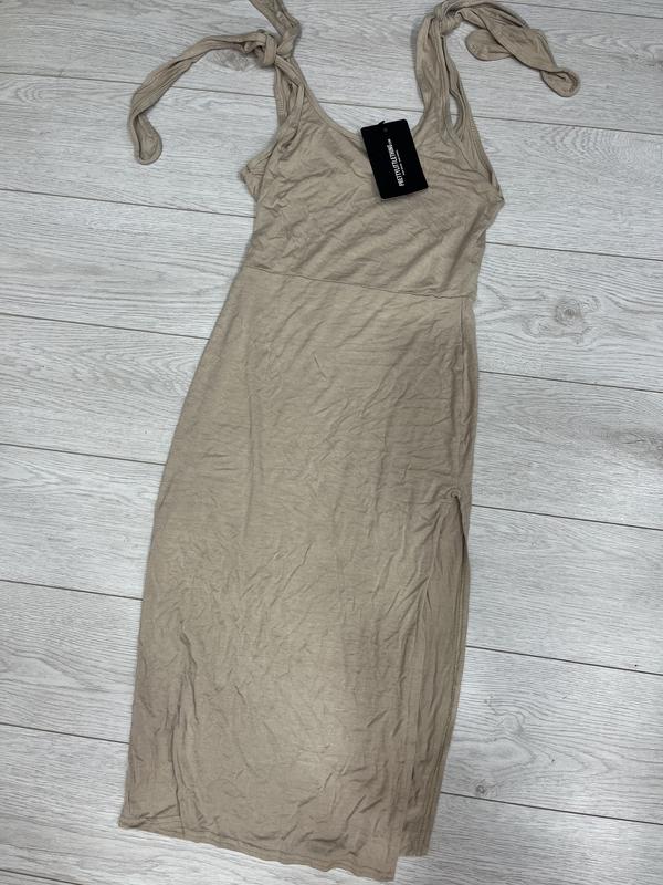 Дуже приємна та легка сукня, лямки регулюються на завʼязках, розріз на лівій нозі, с - маленька м