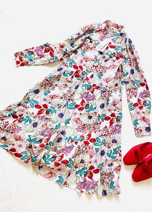 Платье из хлопкового шитья от Esprit. 100% органический хлопок белого цвета, украшенный выбитой вышивкой в тон и ярким принтом в цветы. За счет мельчайших «дырочек» выбивки, платье дышащее. Цена на этикетке 59.99 евро. Внизу платье- комбинация из белого 100% хлопка. Платье свободное, расширяется от линии талии, сшито ярусам. Кокетка двойная, головка рукава чуть присобрана. Очень женственное, красивое платье ! Размер s,m длина 103 см сзади плечи 35 см Подмышки по 50 см длина рукава 62 см линия отреза по поясу 43-44 см