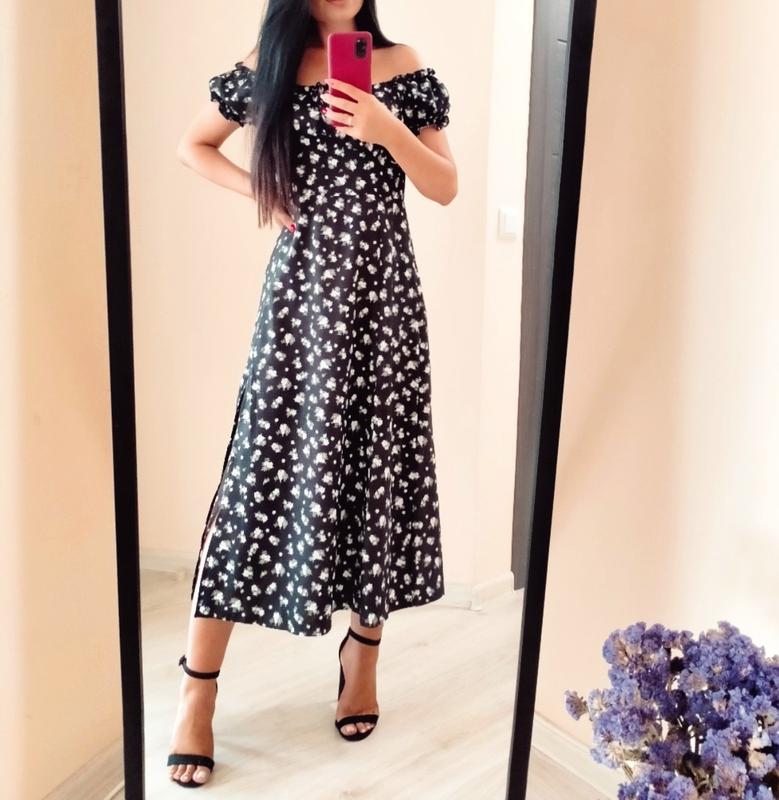 Красива сукня з якісної , легенької тканини з розпіркою ,довжини міді, розмір С-М на грудях регулюється за допомогою резиночки,на рукавах також резиночка, одягалась лише 2 рази ,стан нової