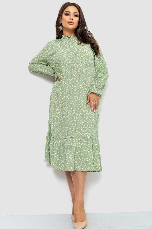 Сукня шифонова з принтом, колір оливковий, 204r201-1