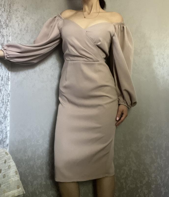Вечірня сукня пудрового кольору з красивим декольте.Плечі можна спустити.Також є поясок з такої ж тканини в комплекті.Сукня без бірки,але не носилась. На фото :зріст 170 ОГ:100 Талія:73 Бедра:103