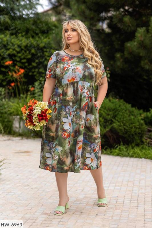 Сукня HW-6960 Розміри: L-XL, 2XL-3XL, 4XL-5XL Тканина-софт принт Замір: L-XL/2-3XL/4-5XL **********/130 Дл: 116/121/123/124 Стегна вільного крою Модель на фото 52-54 розміру.ск3.Не натискайте на кнопку Купить, не дізнавшись за наявність товару.Підписуйтесь.чекаю)