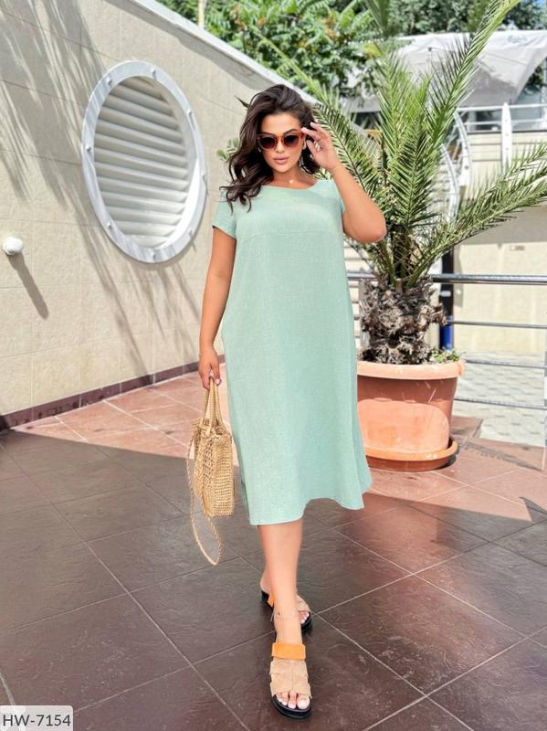 Сукня HW-7154 Мод. 1932 Розмiри: 48-50, 52-54, 56-58 Тканина: льон-жатка. Кольори: білий, сірий, лаванда, олива, джинс. Довжина сукні-115см. Довжина рукава-15см. Замір: 48-50р. Об'єм грудей-114см. Об'єм талії-128см. Об'єм стегон-136см. 52-54р. Об'єм грудей - 122 см. Обсяг талії -136 см. Об'єм стегон-146см. 56-58р. Об'єм грудей-130см. Об'єм талії-144см. Об'єм стегон-154см.