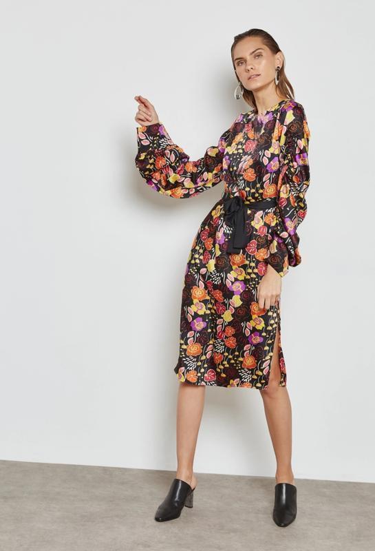 Меди платье mango в цветочный принт с длинными рукавами и пояском.