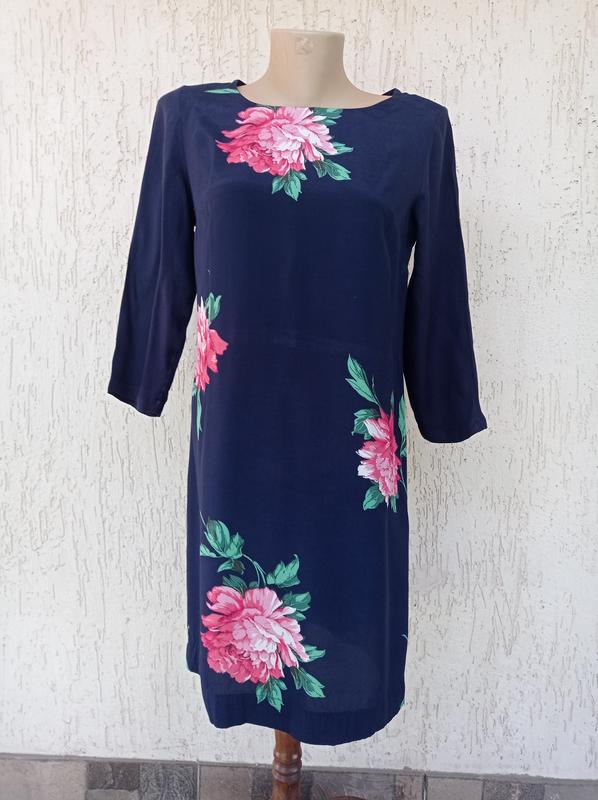 Легка сукня з квітковим принтом з віскози в ідеальному стані. Довжина 84, напівобхват грудей 44, бедер 48, рукав 44, плечі 36.