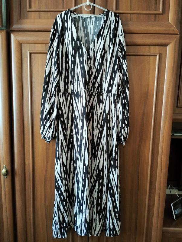 Сукня нова, без етикетки, привезена з Германії. Довжина 120 см Пот 41 см Пог 47 см Рукав 58 см Склад 55% віскоза, 45 % котон Розмір не вказано,приблизно 46-48