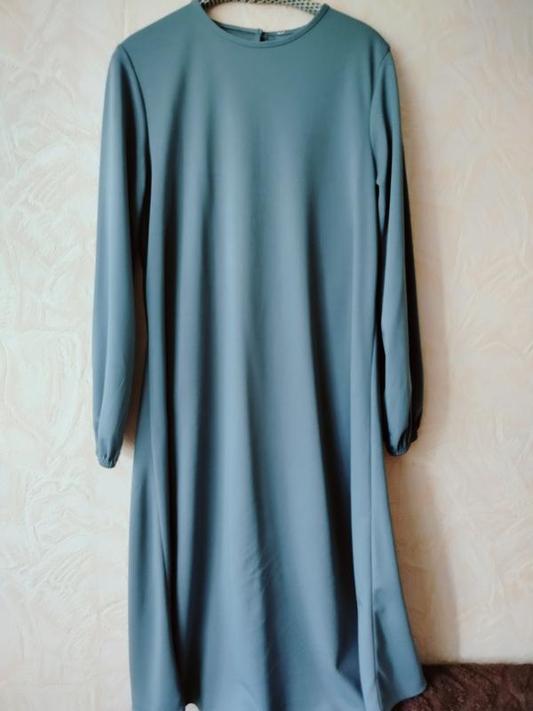 Сукня вільного крою, бірки зрізані, недоліків немає. Довжина виробу 113см, напівоб'єм грудей 52см. стегна 61см, ширина плечей 42см, дліна рукава 63см