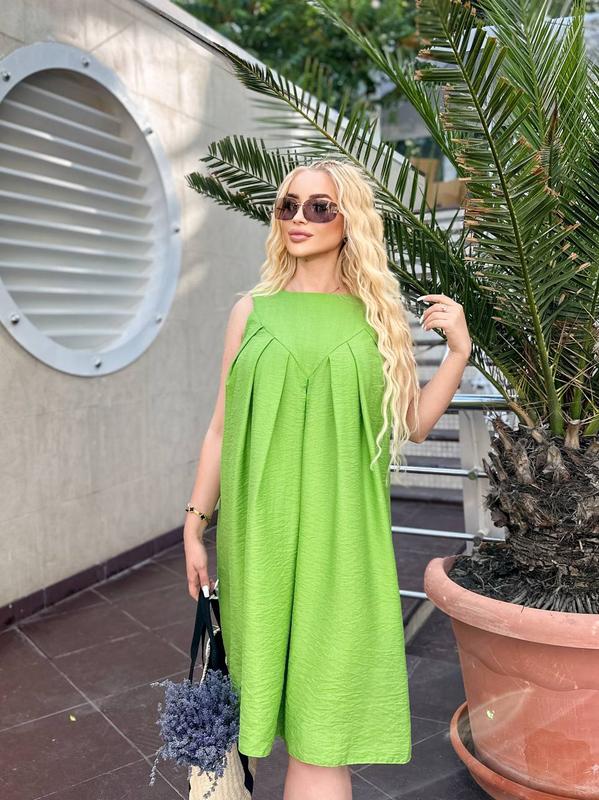 Сукня Тканина : льон жатка Колір: графіт, фісташка Розмір:48-52;54-58 Довжина 95см od