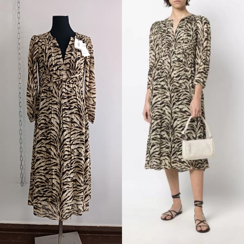 Платье с тигровым принтом, жаккардовая ткань талия с завязками, есть подкладка, средняя плотность, ручная стирка или химчистка Размер указан от бренда XS, US 2, 160/84 cm. 100% вискоза, подкладка:100% вискоза. Длина 116 см, длина рукава 52 см, ширина под руками 48 см, ширина в талии полуобхват 45 см, ширина в бёдрах полуобхват 62 см. Новое с биркой, Цена указана 263 f, 310 Є. Отправка Новой Укрпочтой Meest Безопасная оплата.