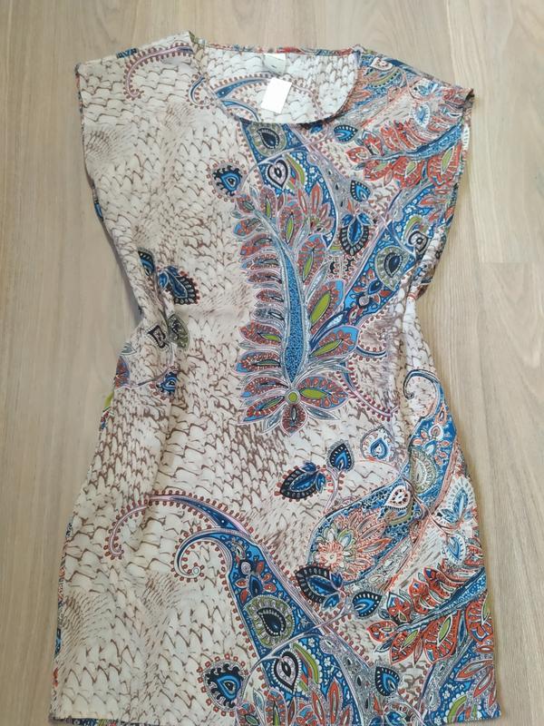 з кармашками,прямий пошив, шикарний принт,не світиться Довжина 87 см Обхват стегон 104 см Талія обхват 100 см Обхват грудей 100 см Прямий покрой З кармашками
