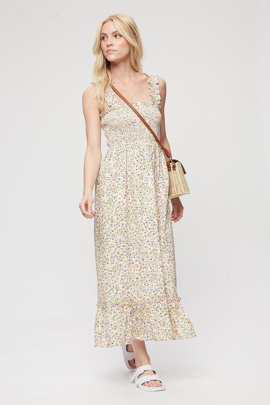Для більш точного визначення, виміри, порівнюйте із вимірами подібної речі, а не зі своїми обсягами. Літня сукня міді у квітковий принт. Тканина щільна, не просвічується, не тягнеться. Ліф та плечі резиночка. Низ рюшею. Стан: новий з биркою. Дефекти: ні. Розмір на бирці: 14/42 (Виміри виробу вимірюються у напівобхваті, а не від шва до шва!) Виміри виробу: Плечі 26см. Висота пройми 17см. Напівобхват грудей 40-65см., Напівобхват талії 37-55см., Напівобхват стегон 69см., Напівобхват низ 69 см., довжина по спині 111см., довжина від плеча 129см., довжина від плеча до талії 37см.. Склад тканини: 100% бавовна. Країна виробник: Індія Бренд: Dorothy perkins. Оплата і доставка: Оплата на картку монобанк. Бронювання на оплату тільки 24 г. При змінах наміру купувати обов'язково повідомляйте! Доставка: На час введення воєнного стану, уточнюйте, чи можлива доставка до Вашого пункту. Актуальні новини можна уточнити на сайті перевізника та за номером телефону контакт-центрів. Не забудьте ПІДПИСАТИСЯ, щоб бути в курсі всіх новинок та розпродажів!