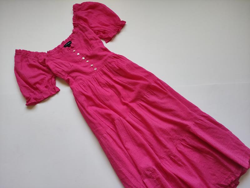Літня сукня міді Розмір вказаний 16 Підійде на XL-XXL ПОГ - 53-54, ПОТ - 44, ПОБ - вільно Довжина 124. 100% котон, підкладка -100% котон Легка натуральна тканина і підкладка, чудова якість, актуальна модель - ця сукня зробить ваш образ яскравим та неповторним