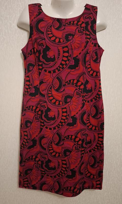 Сукня H&M,суперова,приталенна,красивий насичений принт..ззаду замочок довгий,,внизу шліца Розмір: 14(44/46) Плечи-37 виріз руки великий Пог-48 тянется Пот-47 Поб-54 Довжина-103 97% котон 3% еластан Індія