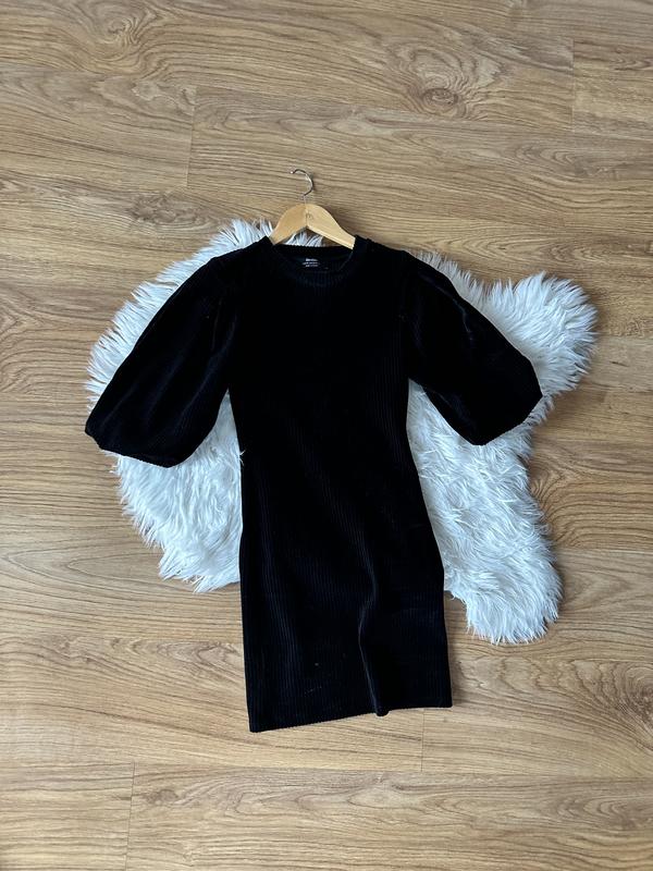 Черное платье велюр рукав фаариком