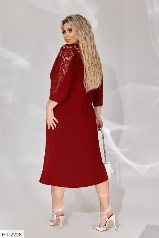 Сукня HT-2228 1346 Розміри: 50-52, 54-56, 58-60 Колір: бордо, зелений, синій, електрик, рожевий. Тканина пр-під Туреччини: креп дайвінг, гіпюр з блискітками. Кожна жінка бажає виглядати красиво і елегантно. У цій сукні ви будете виглядати оригінально і жіночно, демонструючи наявність відмінного смаку і індивідуального стилю. Орієнтовні виміри. Розмір 50-52: Сукня: дв. Вір. 105/115 см, рукав 55 см ОГ 112 см. Розмір 54-56: Сукня: дв. Віра. 106/116 см, рукав 55 см. ОГ 120 см. Розмір 58-60: Сукня: дв. Віра. 108/118 см, рукав 56 см. ОГ 128 см.