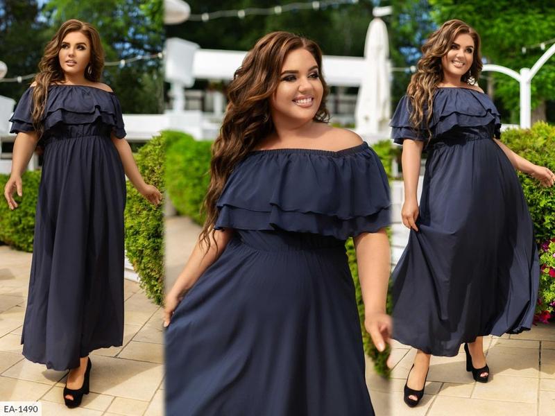 Сукня EA-1490 1223 Розміри: 50-52, 54-56 Колір: олива, пудра, синій, бордо. Довжина 150 см., рукав 26 см. Тканина софт-шовк про-во Туреччини.