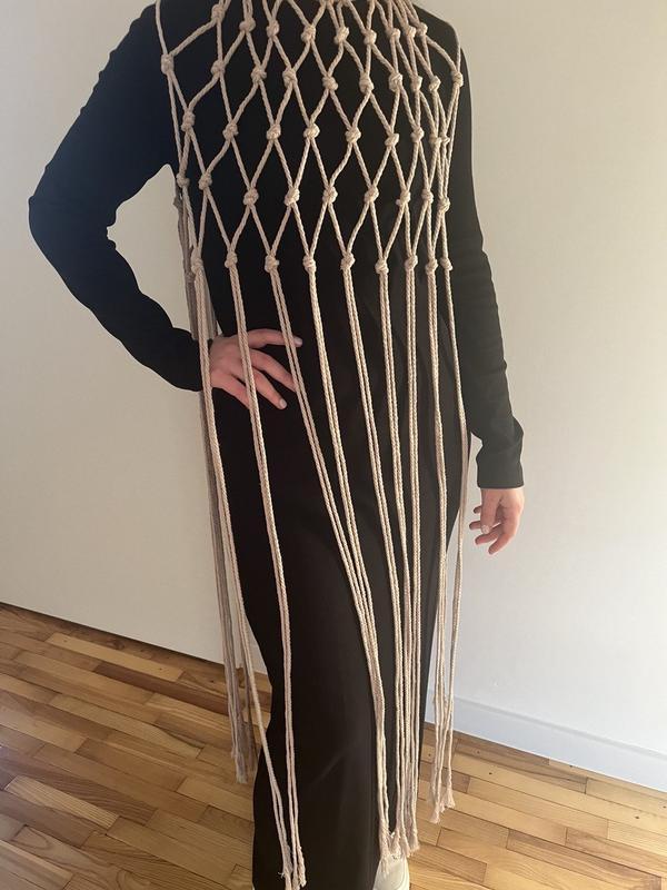 Стильна сукня виконана у техніці макраме. Доповнить образ на свято чи кожен день, крім того буде стильно виглядати у пляжних луках. Можна виготовити у будь якому кольорі