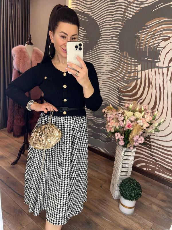 заворожуюче красива сукня серії люкс чудово продемонструє фігуру і приверне до вас погляди оточуючих сукня приталеного крою ідеально виглядає на дівчатах з будь-яким типом фігури, вона виконана з приємного до тіла трикотажу машинного в'язання з витонченим вирізом на грудях, неймовірно красивою вільною спідницею на гумці вгорі та поясом у комплекті, сукня виготовлена з ефектного ансамблю двох тканин - трикотажу машинного в'язання вгорі, декорованого золотистими ґудзиками, та щільного зимового котону внизу з чарівним принтом розміри : М - 42 довжина 118-120 см, пг 40-42 см тягнеться добре, довжина рукава від шиї 64-66 см тягнеться Л-44 довжина 118-120 см, пг 42-44см тягнеться, др від шин 64-66 см тягнеться ХЛ-46 довжина 118-120 см, пг 44-46 трикотаж тягнеться, др від шиї 64-66 см 2 ХЛ-48 довжина 118 -120 см, пг 46-48 см тягнеться, др від шиї 64-66 см ціна 1550 грн код 0506