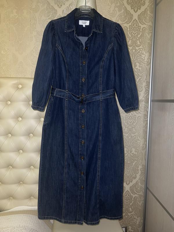 Стильне плаття Monsoon з тонкого деніму. В ідеальному стані, надягалася один раз. 100% бавовна, тонкий джинс. Попереду на ґудзиках, ремінь у комплекті. Заведено розмір 10, підійде на повномірну М, невелику L. Заміри за запитом.