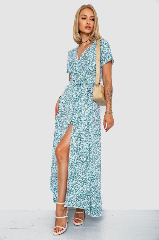 Сарафан квітковий принт, колір зелений, 241r160-1