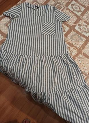 Ярусное платье, коттон, полоска серо- белая. ПОГ-53, ПОТ-55, ПОБ-59, длина-120, плечи-43. Есть 2005анс, на последнем фото, три пятнышка. Ньюанс легко устранить сократив длину на 4 см. В цене учтены