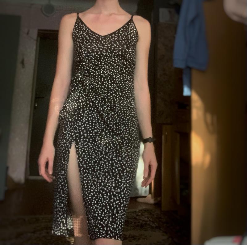 Сукня чорна з білими крапочками. Розмір S. З розрізом на ніжці. Стан ідеальний