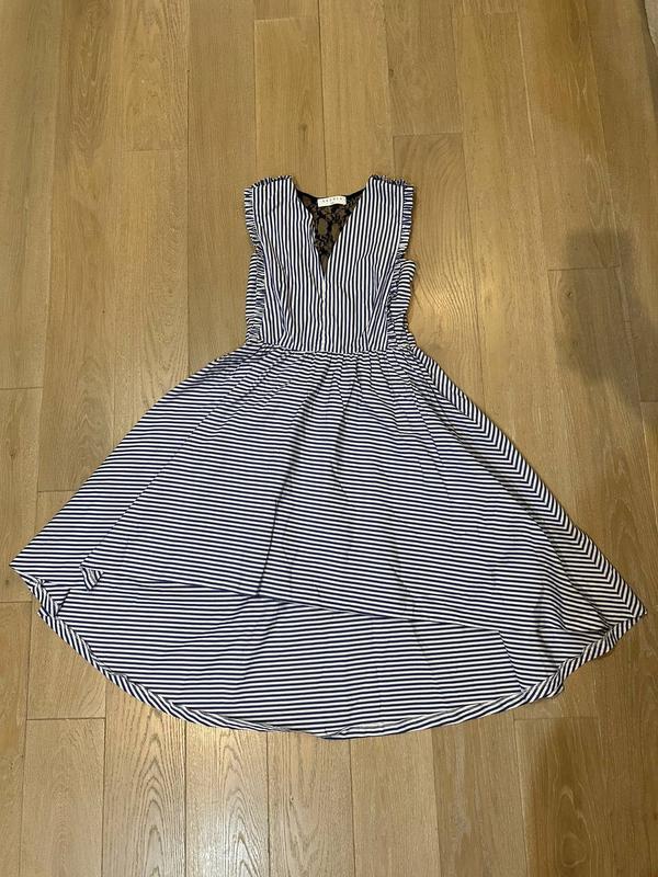 Сукня з платної тканини, гарно тримає форму. Фішка цієї сукні- прозора кружевна спинка, та подол піднятий спереду. Дуже ефектно.