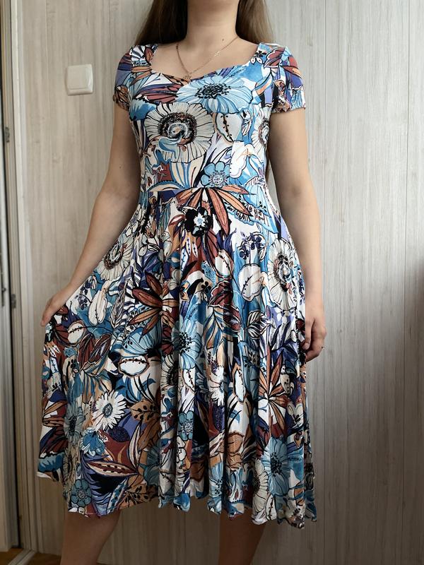 Сукня з тканини віскоза⭐️ Стан ідеальний 😍 Бренд: Made in China Колір: Блакитний з квітками Ціна: 🏷️150 грн Довжина сукні 102 см Розмір на сукні невідомо, але підійде для L ОГ 44 до 60 ОТ 40 до 56 Параментри моделі: Стегна 97 Талія 79 Груди 92 Зріст 170
