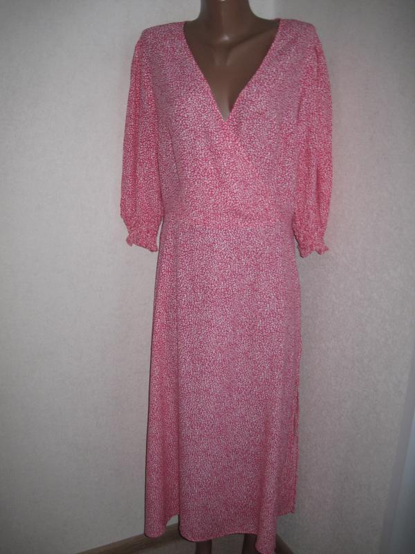 Розовое вискозное платье миди F&F р-р16, вискоза шелковистая, лиф на запах, ПОГ59, ПОТ44+резинка по спине до 59, ПОБ60. до талии 44. длина 125, рукав 45. по бокам разрезы 42см,идеальное состояние, 410грн