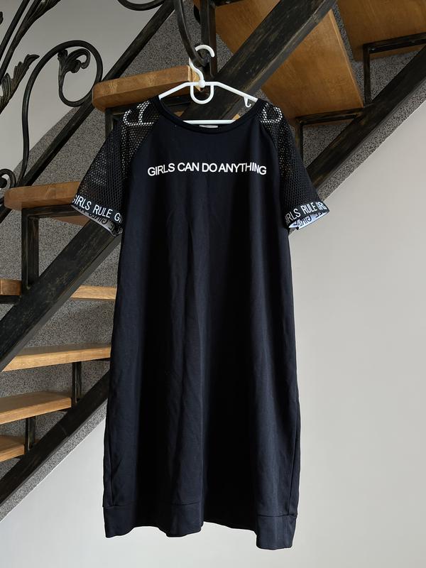 Чорне плаття з надписом, на зріст 158/164, трикотаж, довжина - 78 см, півобхват бедер - 50 см
