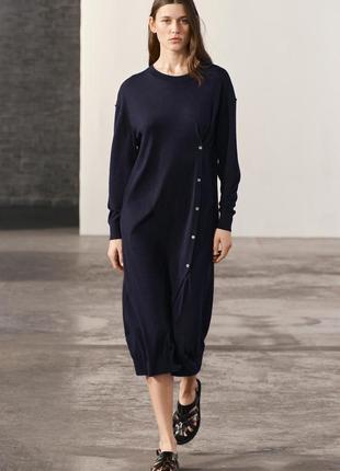 В'язане плаття з бічними гудзиками . Остання колекція. 50% поліестер 21% акрил 20% поліамид 9% вовна. Заміри без розтягування - Пог 54, довжина 119, стегна 54, рукав (спущений) 54, плечі 54.