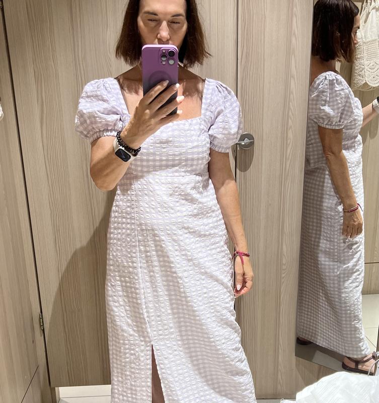 З розрізом попереду, максі довжина, застібка на блискавці збоку, ПОГ 46см, ПОБ 54см, довжина 117 см.