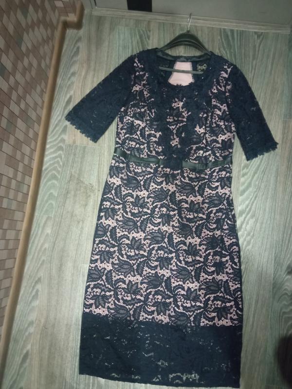Сукня синього кольору з мережевом. Під'юпник коралового кольору.