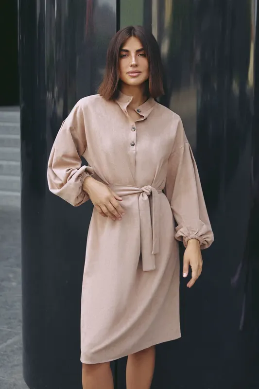 Замшева міді сукня бежева сукня прямого крою з замшевої тканини