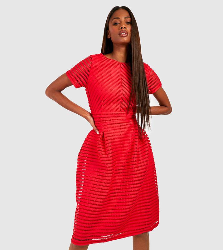 Стильна сукня від Bоohoo прикрасить Вас на випускному вечорі або на будь-якому іншому заході Довжина міді Нова,але на останньому фото мінімальний дефектик,який можна виправити,просто поправши